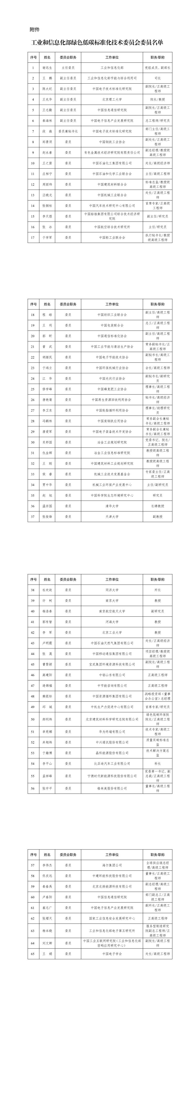 附件:工业和信息化部绿色低碳标准化技术委员会委员名单