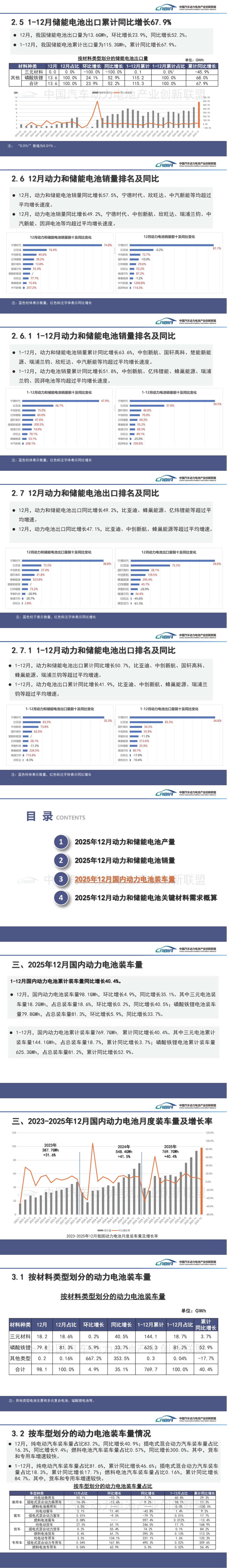 【行业数据】2025年国内动力电池累计装车量769.7GWh, 同比增长40.4%