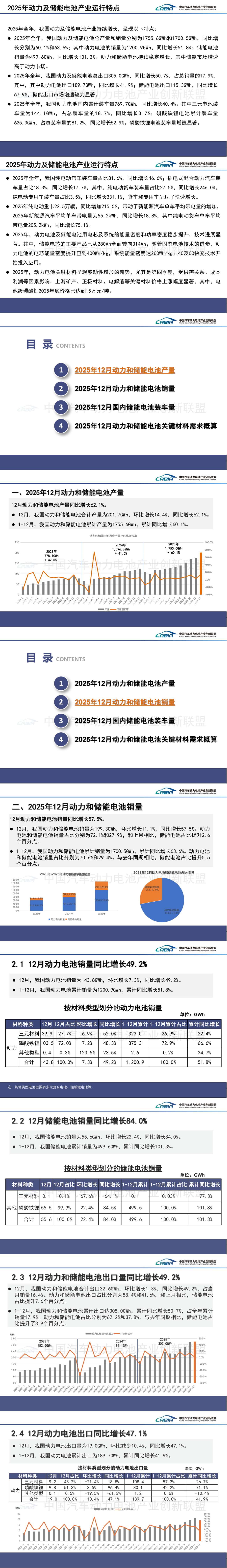 中国汽车动力电池产业创新联盟:2025年12月我国动力和储能电池合计产量同比增长62.1%