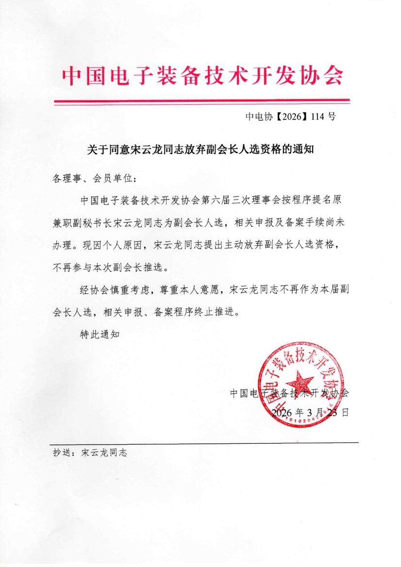 关于同意宋云龙同志放弃副会长人选资格的通知