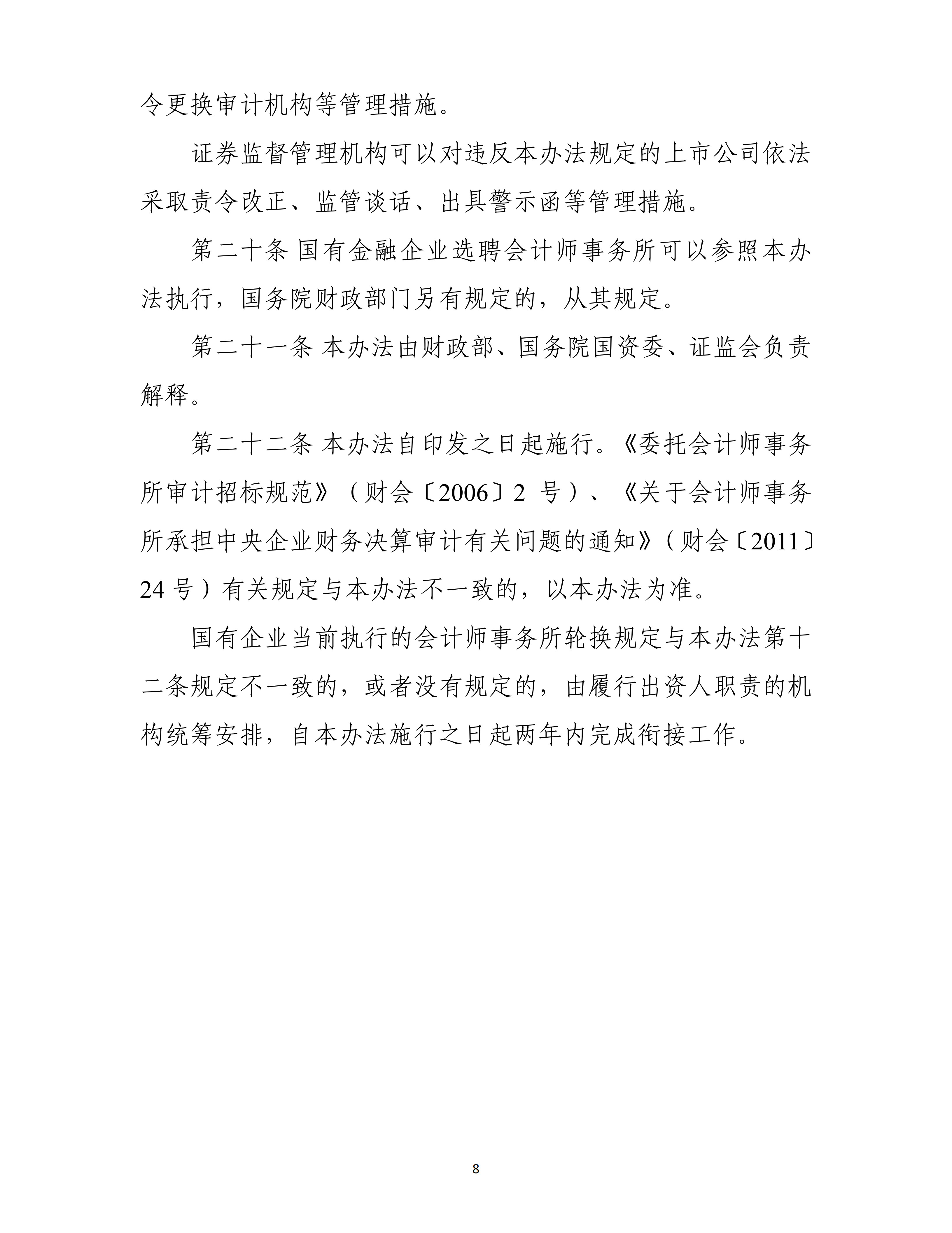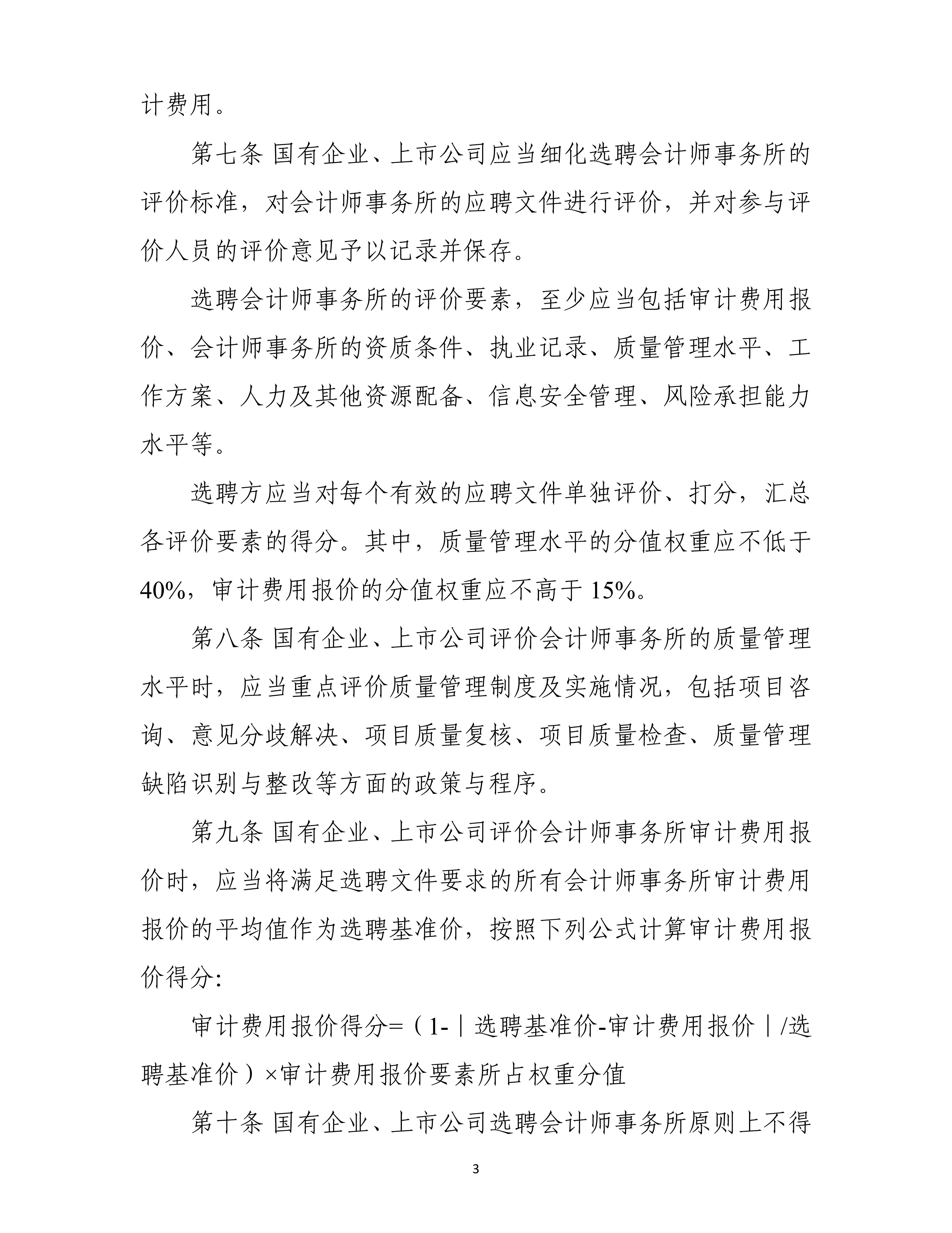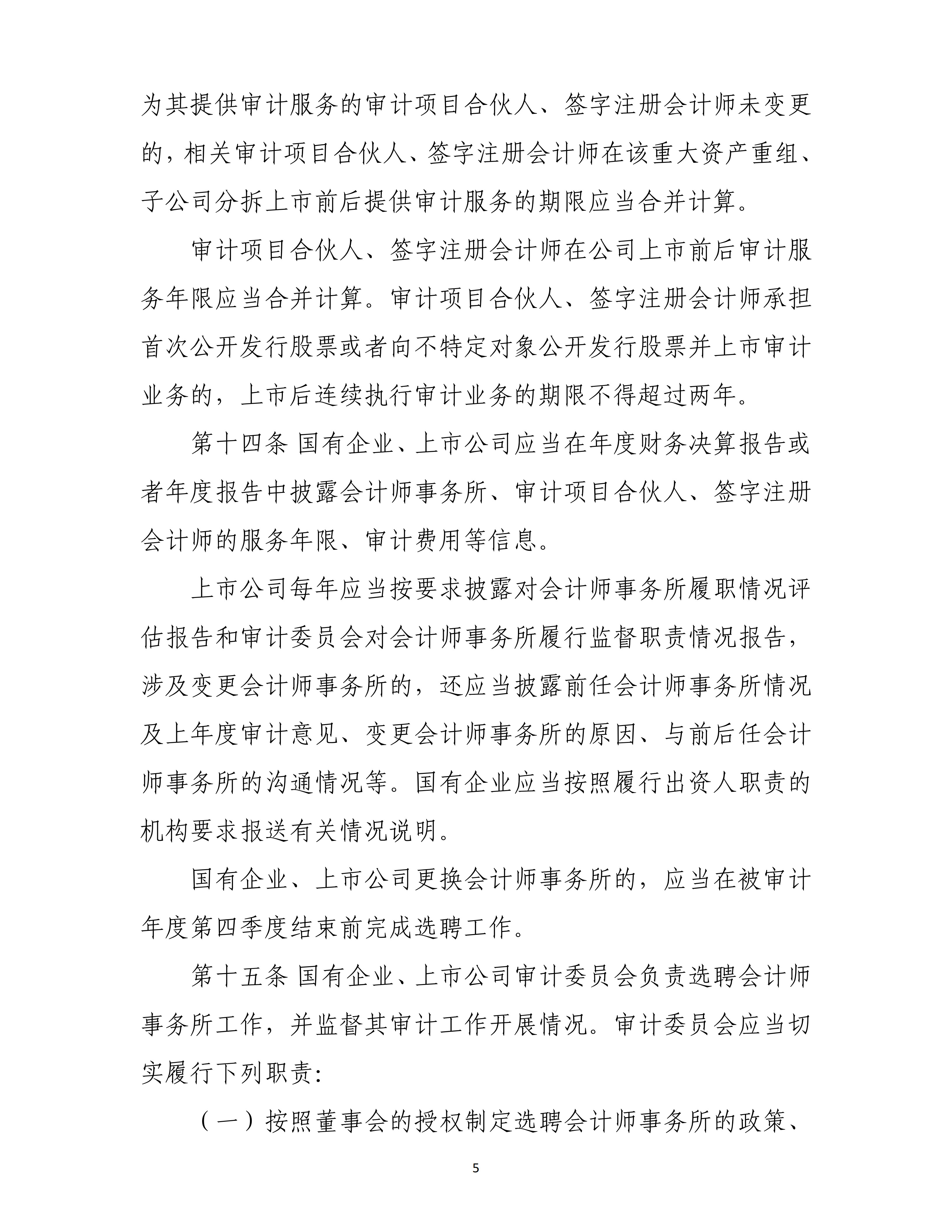 《选聘办法》指出,国有企业及其股票在境内证券交易所上市交易的股份有限公司,应加快完善选聘会计师事务所相关制度,规范选聘会计师事务所行为。应当采用竞争性谈判、公开招标、邀请招标以及其他能够充分了解会计师事务所胜任能力的选聘方式,保障选聘工作公平、公正进行。同时,《选聘办法》对会计师事务所轮换、信息披露、审计委员会职责等重点事项作出规范,明确财政部门可以对违反本办法规定的会计师事务所依法采取责令改正、监管谈话、出具问询函、出具警示函、责令公开说明、责令定期报告等管理措施。