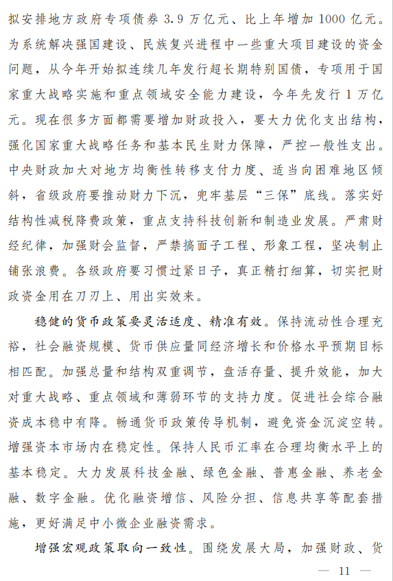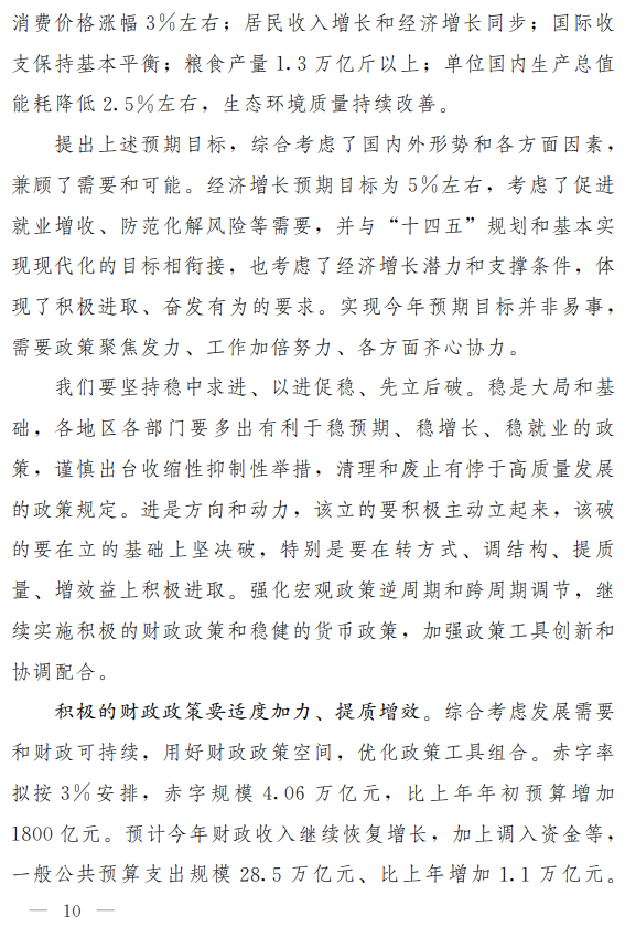 1. 今年赤字率拟按3%安排,赤字规模4.06万亿元。