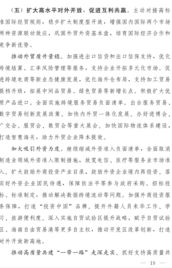24. 全面取消制造业领域外资准入限制措施,放宽电信、医疗等服务业市场准入。
