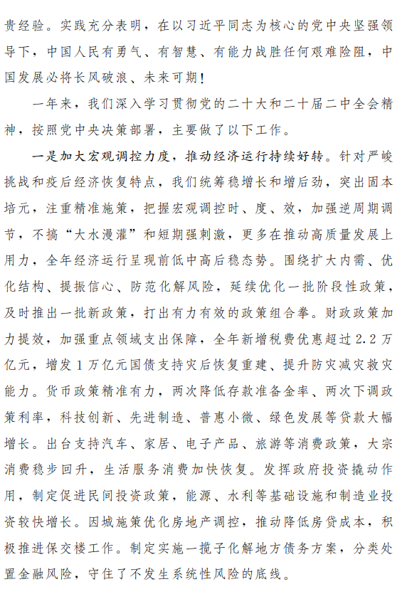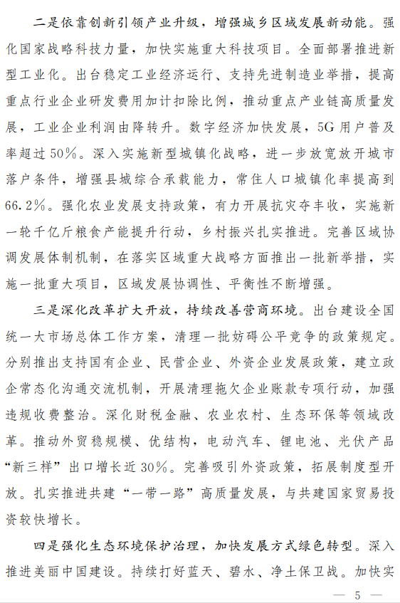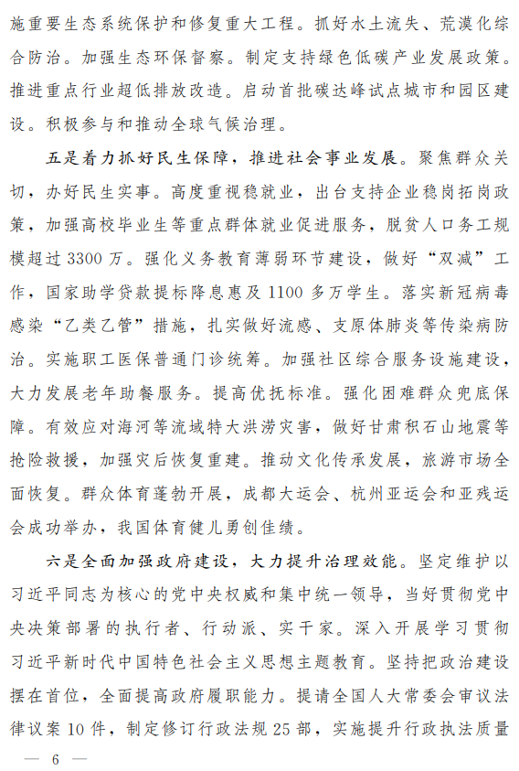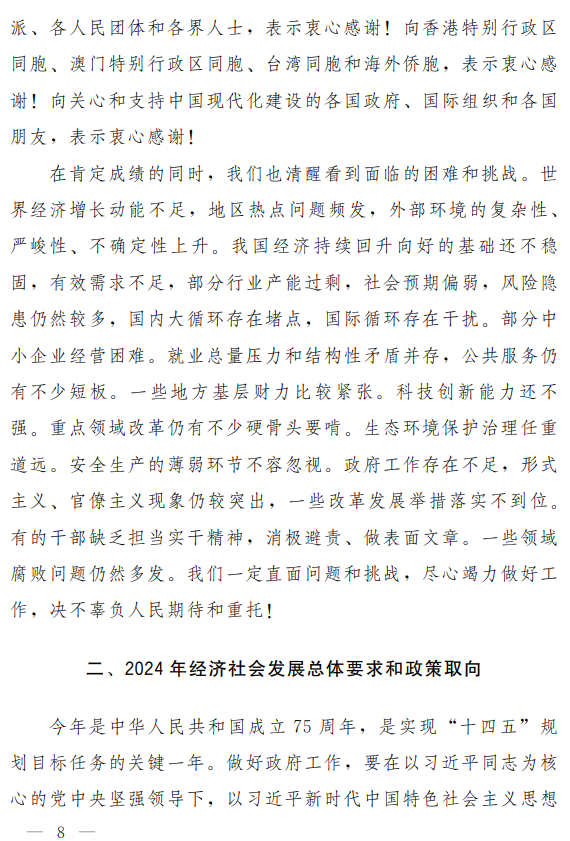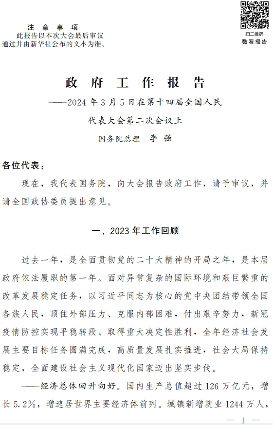 2024年3月5日,在第十四届全国人民代表大会第二次会议上,国务院总理李强发布政府工作报告,其中提到: