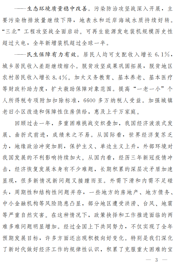 1. 今年我国发展面临的环境仍是战略机遇和风险挑战并存,有利条件强于不利因素。