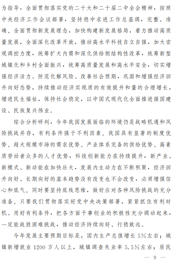 2. 城镇新增就业1200万人以上,城镇调查失业率5.5%左右。