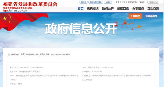 电车资源获悉,10月8日,福建省发展和改革委员会等8单位关于加快构建废弃物循环利用体系有关工作的函。