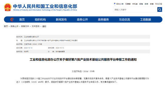 为贯彻落实党的二十届三中全会关于行业共性技术平台建设的决策部署,完善共性技术服务体系,根据《产业技术基础公共服务平台建设管理暂行办法》(工信部科〔2015〕458号)要求,现组织开展第六批产业技术基础公共服务平台申报工作。有关事项通知如下: