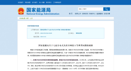 由于部分电力企业和地方能源主管部门在分布式光伏发电项目前期备案、接入电网等方面存在的问题,制约了分布式光伏发展,国家能源局10月21日在官网最新发布了《国家能源局关于七起分布式光伏并网接入等典型问题的通报》(下称《通报》)