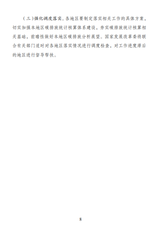 答:一分部署,九分落实。下一步,国家发展改革委将发挥“双碳”协调职责,加强工作统筹和调度落实,一是建立碳排放统计核算工作协调机制,协调重要政策,加强数据管理和共享应用,推动形成工作合力;二是指导各地区制定具体方案,强化调度检查和督导帮扶,推动地方结合实际加快落实相关要求;三是推动各有关部门抓好任务落实,补齐制度短板,加强宣传培训,持续夯实工作基础,尽早构建形成系统完备的碳排放统计核算体系。