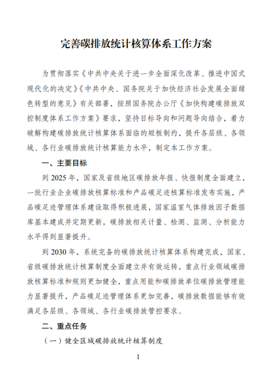 该《方案》是在2022年4月份国家发改委、国家统计局、生态环境部《关于加快建立统一规范的碳排放统计核算体系实施方案》部署基础上的进一步细化任务、压实责任,对于支撑‘十五五’开展碳排放双控、加快发展方式绿色转型具有重要意义。