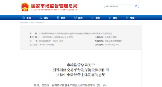 市场监管总局关于引导网络交易平台发挥流量积极作用扶持中小微经营主体发展的意见