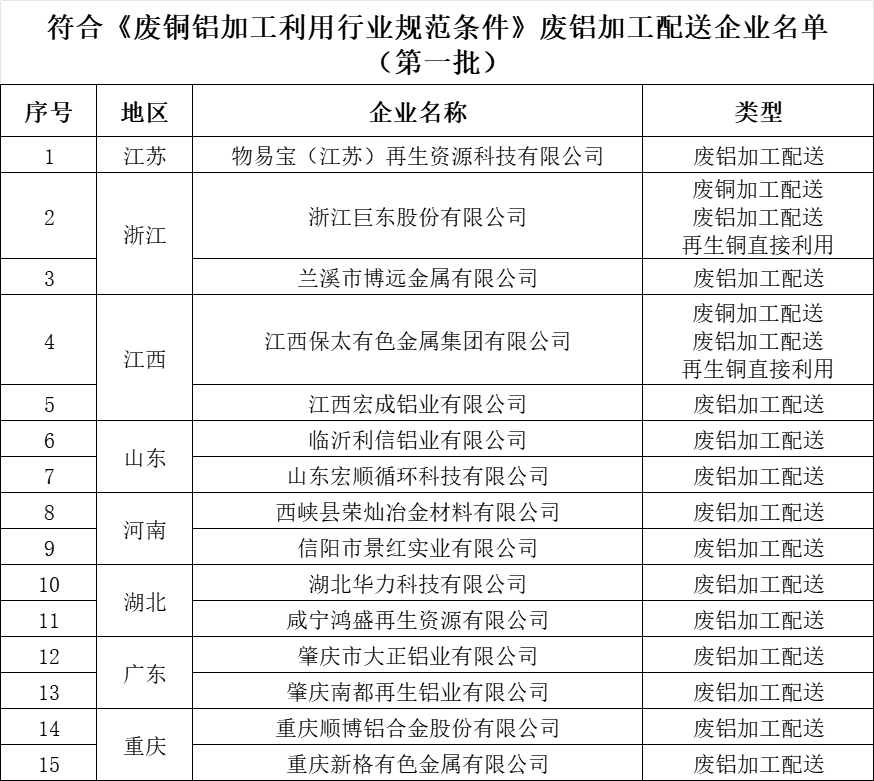 附件:符合《废铜铝加工利用行业规范条件》企业名单(第一批)