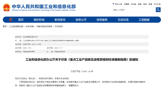 11月11日,工信部发布的《重点工业产品碳足迹核算规则标准编制指南》指出,逐步完善重点工业产品碳足迹核算方法规则和标准体系,推动建立符合国情实际的产品碳足迹管理体系,促进工业绿色低碳转型,助力经济高质量发展。到2027年,制定出台200项重点工业产碳足迹核算规则标准,应用场景得到显著拓展。