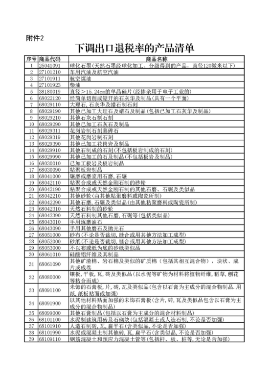 2.下调出口退税率的产品清单