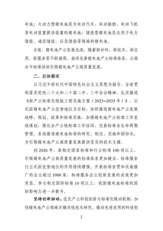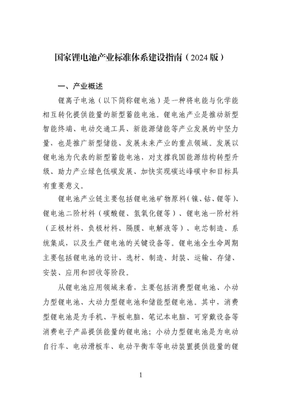 为认真落实《新产业标准化领航工程实施方案(2023―2035年)》,加强锂电池产业标准工作顶层设计,促进锂电池产业健康有序发展,我们组织编制了《国家锂电池产业标准体系建设指南(2024版)》。现印发给你们,请结合实际,抓好贯彻落实。