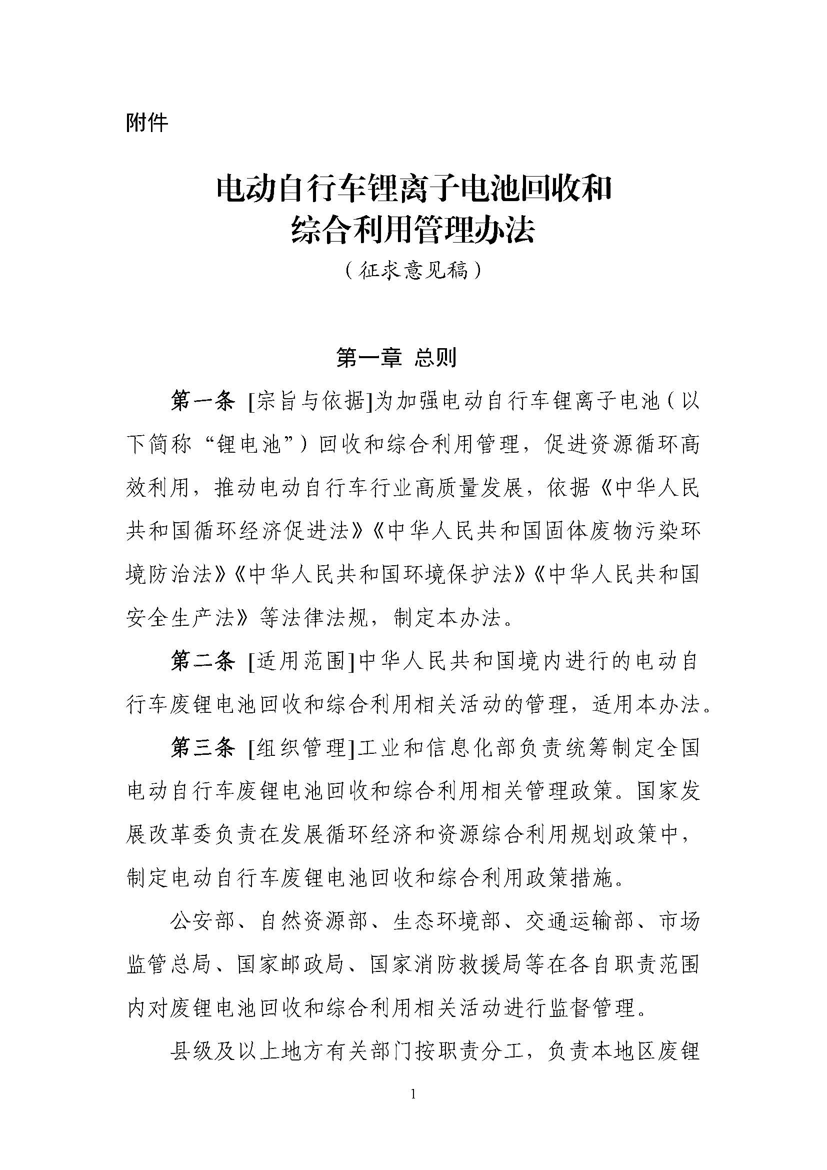 附件:《电动自行车锂离子电池回收和综合利用管理办法(征求意见稿)》