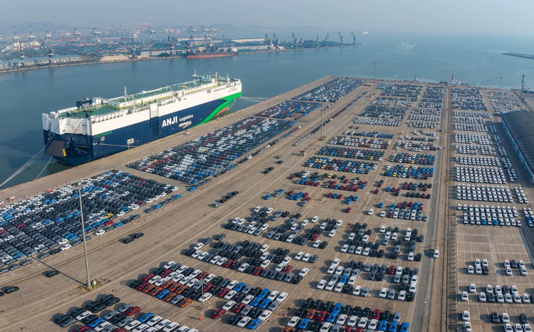 △2024年12月25日,山东烟台港码头大量的新能源汽车出口,正加紧装船。