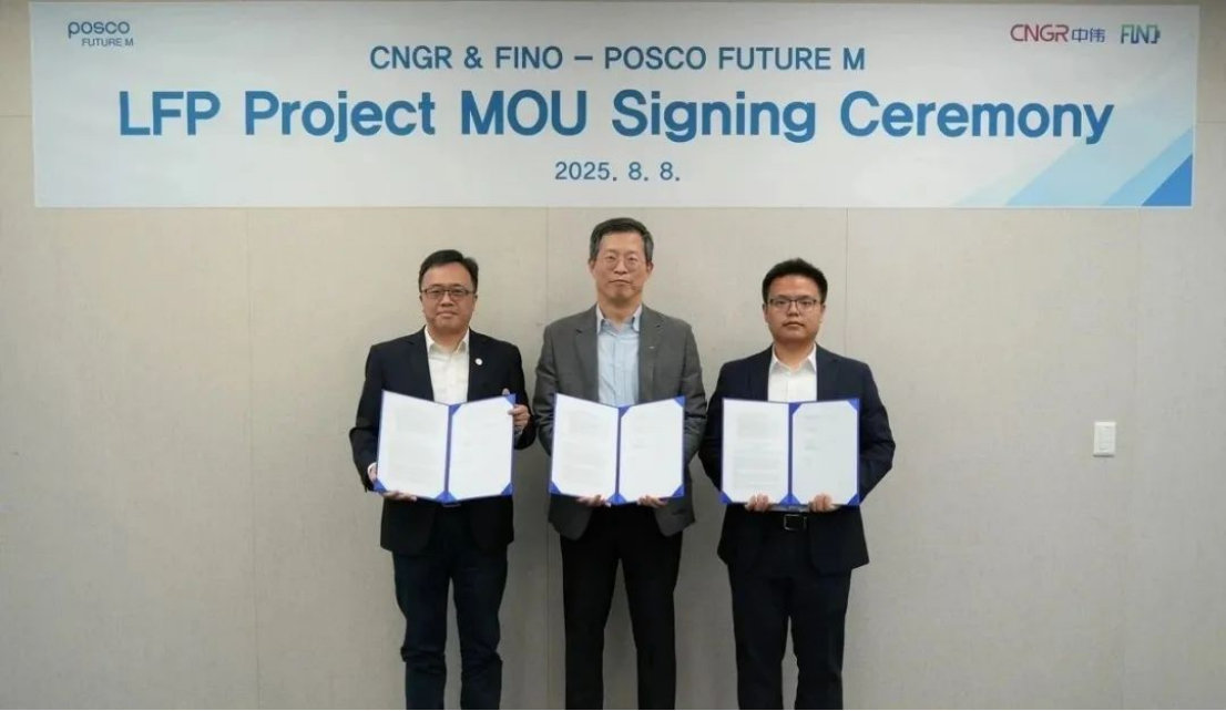 8月11日,韩国电池材料企业POSCO Future M 宣布,公司与中国二次电池材料企业中伟(CNGR)在首尔江南浦项中心签署推进LFP正极材料业务的合作协议(MOU)。中伟在韩国的子公司FINO也参与此次签约,三方计划围绕为储能系统(ESS)建设LFP正极材料生产设施、联合市场推广等方面开展多种合作。