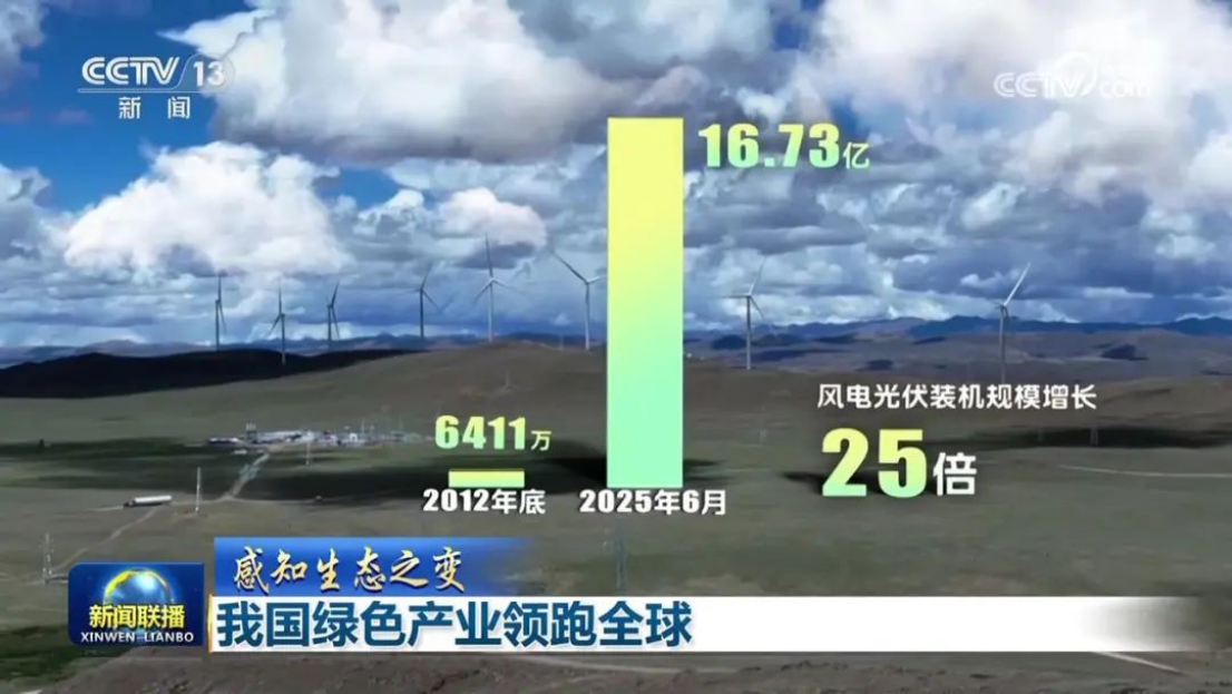 万米高空感知着这些地区的改变。在库布齐沙漠,2022年这里还是一片荒芜之地,现在长出了一片片“蓝色海洋”。在甘肃,3万面镜子点亮了这片荒漠,它们可以帮助存储起热量,让光伏也能实现全天发电。党的十八大以来,风电光伏发电装机规模增长了25倍,今年,已历史性超过火电装机。我国清洁能源投资规模占全球比重在过去十年间从四分之一提升至三分之一。