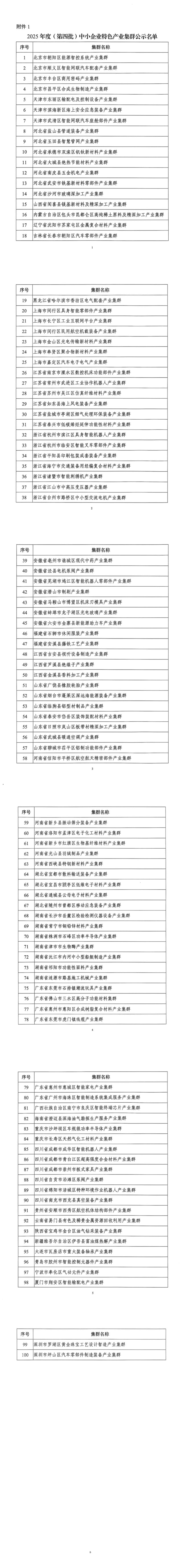 附件:1.2025年度(第四批)中小企业特色产业集群公示名单