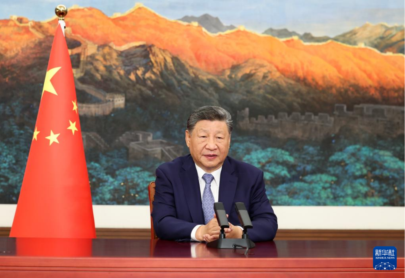 借此机会,我宣布中国新一轮国家自主贡献:到2035年,中国全经济范围温室气体净排放量比峰值下降7%-10%,力争做得更好。非化石能源消费占能源消费总量的比重达到30%以上,风电和太阳能发电总装机容量达到2020年的6倍以上、力争达到36亿千瓦,森林蓄积量达到240亿立方米以上,新能源汽车成为新销售车辆的主流,全国碳排放权交易市场覆盖主要高排放行业,气候适应型社会基本建成。