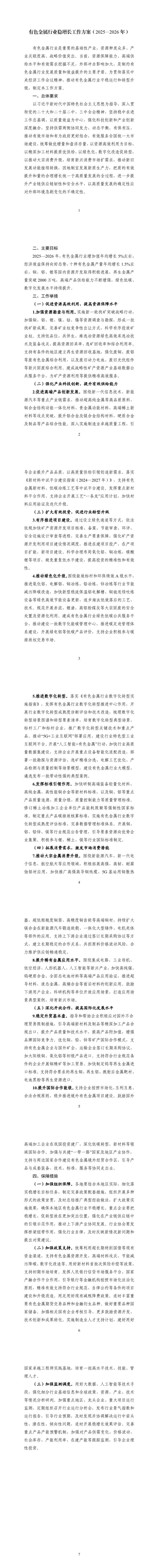 现将《有色金属行业稳增长工作方案(2025—2026年》印发给你们,请结合实际认真抓好落实。