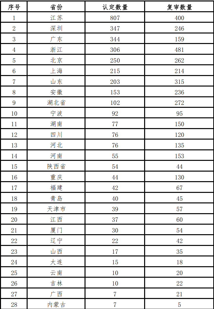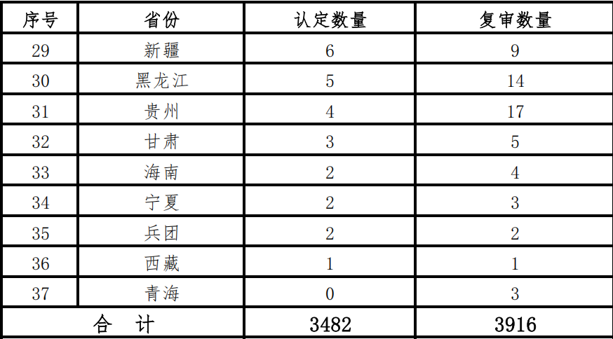 2025年10月20日,全国各省级工业和信息化主管部门陆续公示了第七批专精特新“小巨人”企业认定名单及第四批“小巨人”企业复审结果。经公示统计,第七批新认定企业总数达3482家,同期通过复审的企业数量为3916家,见表1。