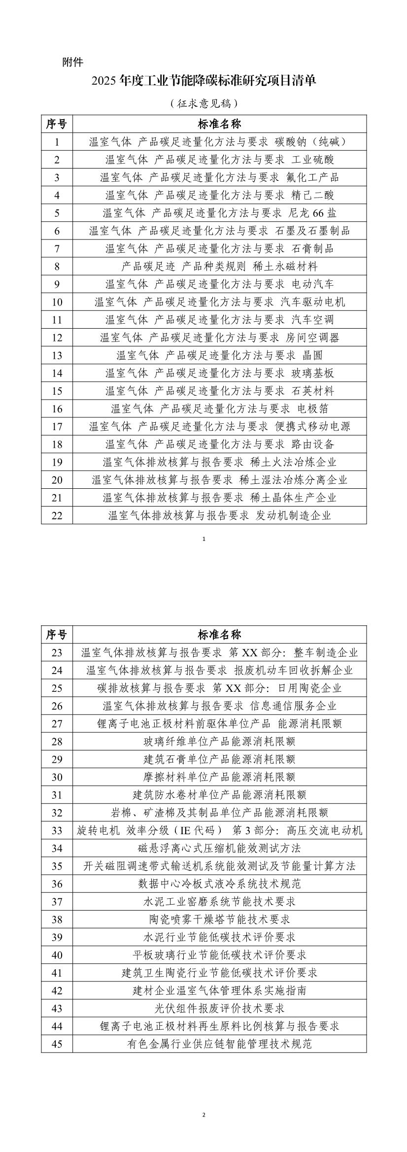 附件:2025年度工业节能降碳标准研究项目清单(征求意见稿)