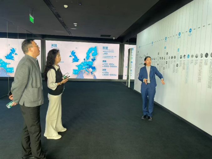 在参观行程中,首先,一行人来到氢能交流中心。作为园区的对外展示宣传中心,这里全面展示了氢能政策、国际领先发展成果、燃料电池技术设备以及车辆应用等内容。并且,该中心已成功举办多场大型会议活动,在氢能领域的信息传播与交流方面发挥着重要作用。