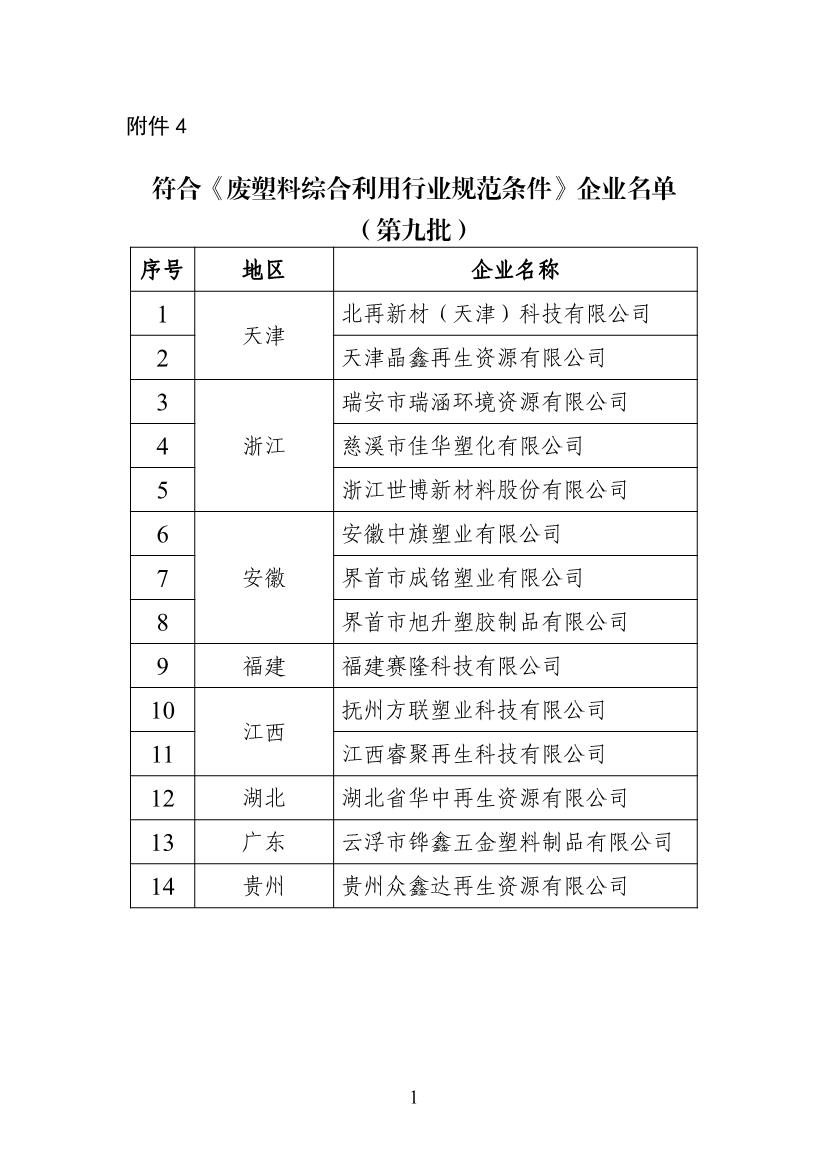 4. 符合《废塑料综合利用行业规范条件》企业名单(第九批)