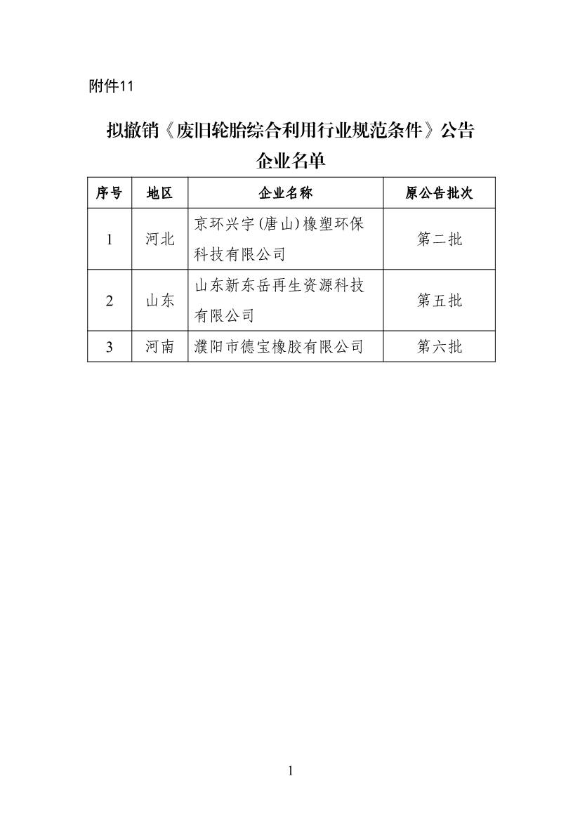 11. 拟撤销《废旧轮胎综合利用行业规范条件》公告企业名单