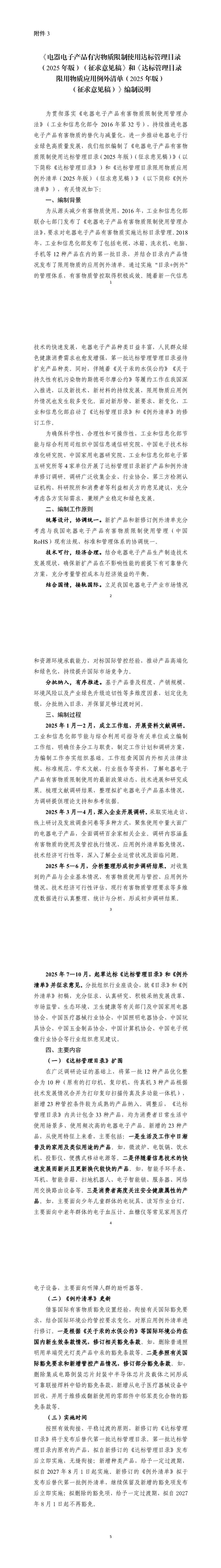 1.《电器电子产品有害物质限制使用达标管理目录(2025年版)(征求意见稿)》