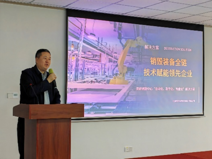 随后,北京和升达信息安全技术有限公司总经理赵龙对和升达公司的发展历程、所获相关资质、销毁中心的建设与运营规范以及公司未来发展趋势等内容进行了介绍。