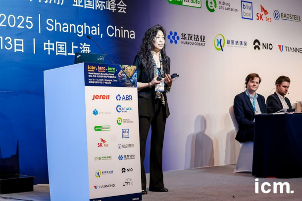 唐爱军在演讲中指出,中国新能源汽车与动力电池产业已实现规模化发展,伴随产业成长,动力电池退役量逐步进入增长期,为循环利用产业开辟了广阔空间。针对产业核心需求,她重点介绍了中国在梯次利用与再生利用两大技术路径上的创新成果:梯次利用领域,通过 AI 检测与自动化拆解、主动均衡技术、区块链溯源管理等关键技术,最大化挖掘退役电池 “二次生命” 价值,相关成果已广泛应用于储能电站、应急电源等场景;再生利用领域,带电破碎、电磁感应控氧控温热解、短流程锂优先提取等技术达到国际先进水平。