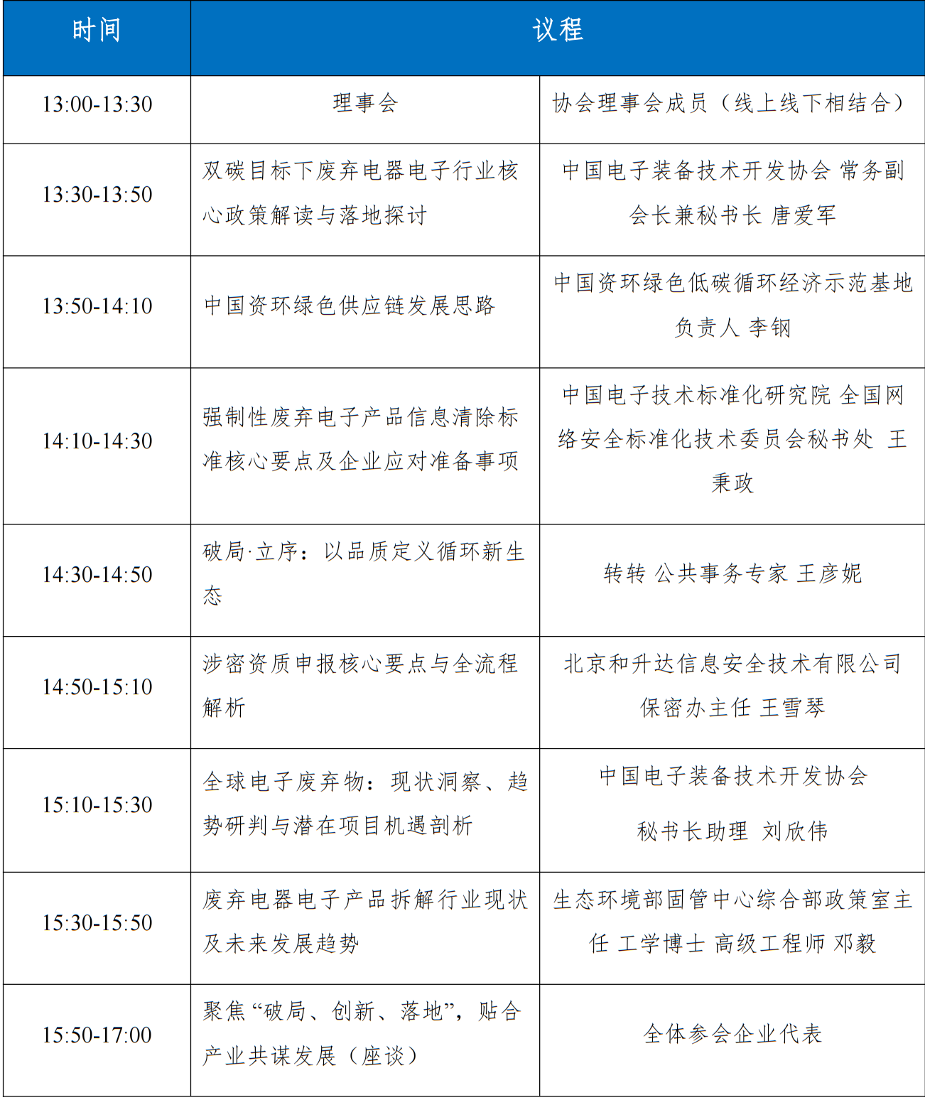 【会议议程】2025废弃电器电子产品拆解行业政策与发展行业研讨会