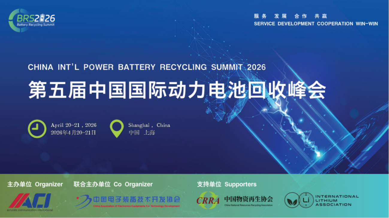 Orqanized by ACl Events, the 5th China International Power Battery Recyclinq Summitwill be held in Shanghai on April 20-21, 2026. The summit will focus on the latest technoloqies, policies, requlations, and industry trends in power battery recyclinq. aiming to promote sustainable development in the field through international cooperation and academic exchange.