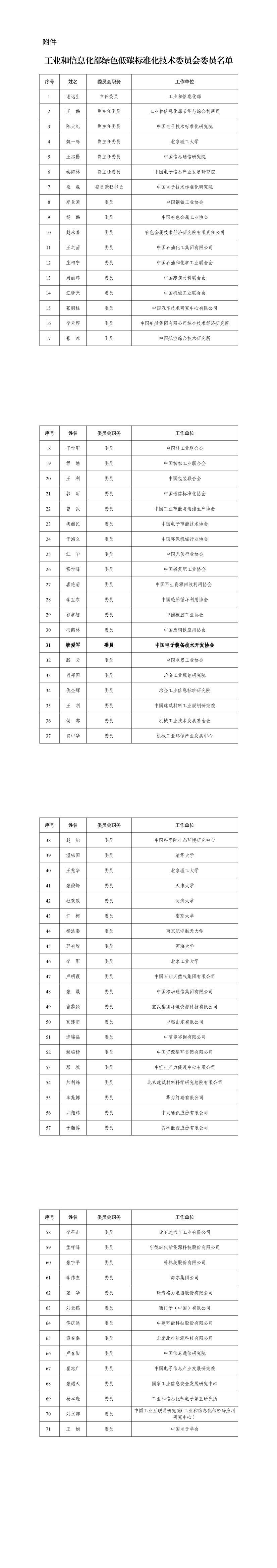 附件:第一届工业和信息化部绿色低碳标准化技术委员会委员名单
