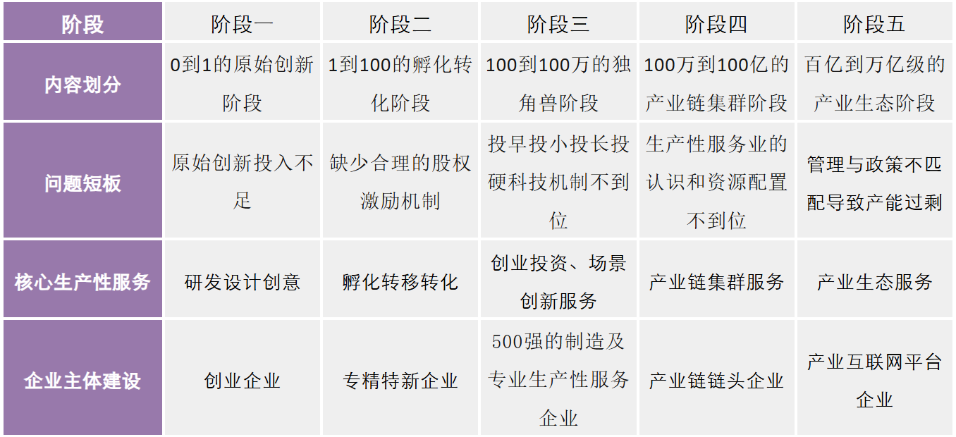 1. 中国及各地区“引领型科创”作为未来中国经济高质量发展,特别是新质生产力发展的重要路径,不能仅仅强调或停留在0到1的原创环节上,而是以0到1的突破性、颠覆性原创技术为起点,包括1到100的孵化转化阶段、100到100万独角兽环节、100万到100亿规模的产业链集群发展阶段和100亿到1万亿多个产业融合的创新发展全过程。这一过程也是科创如何从零成长为一个城市、一个区域乃至整个国家的新兴产业、未来产业的生态大系统的过程,亦是新质生产力培育过程。