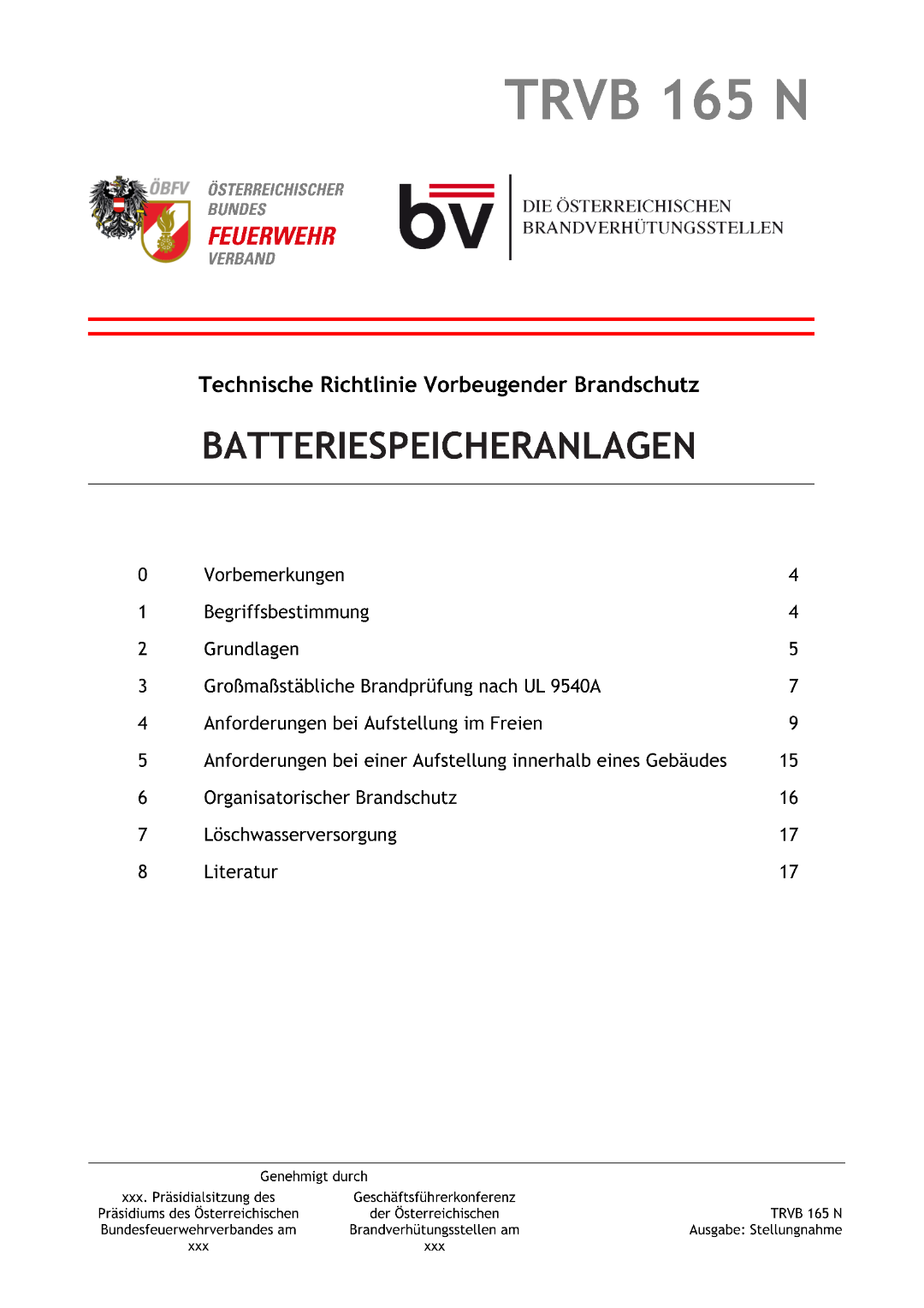 在系列首篇中,我们解读了德国《锂离子大型储能系统预防性与扑救性消防建议》,不同于侧重灭火系统选型与分级配置,本文将聚焦奥地利《技术性防火规范——电池储能装置》(Technische Richtlinie Vorbeugender Brandschutz BATTERIESPEICHERANLAGEN)(以下简称“TRVB规范”),关注项目落地的合规路径。