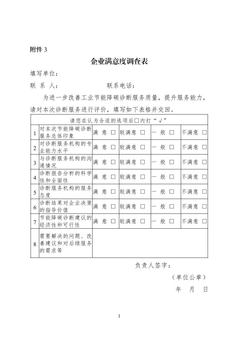 (三)组织开展服务。中标服务机构应按照工业企业和重点行业诊断服务指南等相关要求,高质量开展节能降碳诊断服务,服务过程中不得向企业收取服务费用。请于2026年11月15日前完成相关工作,并将节能降碳诊断报告、节能降碳改造具体方案(参考模板见附件2)、企业碳排放核算报告、产品碳足迹核算报告以及企业满意度调查表(见附件3)等材料报送推荐单位,同步上传至工业节能降碳诊断服务平台(www.gmpsp.org.cn)。